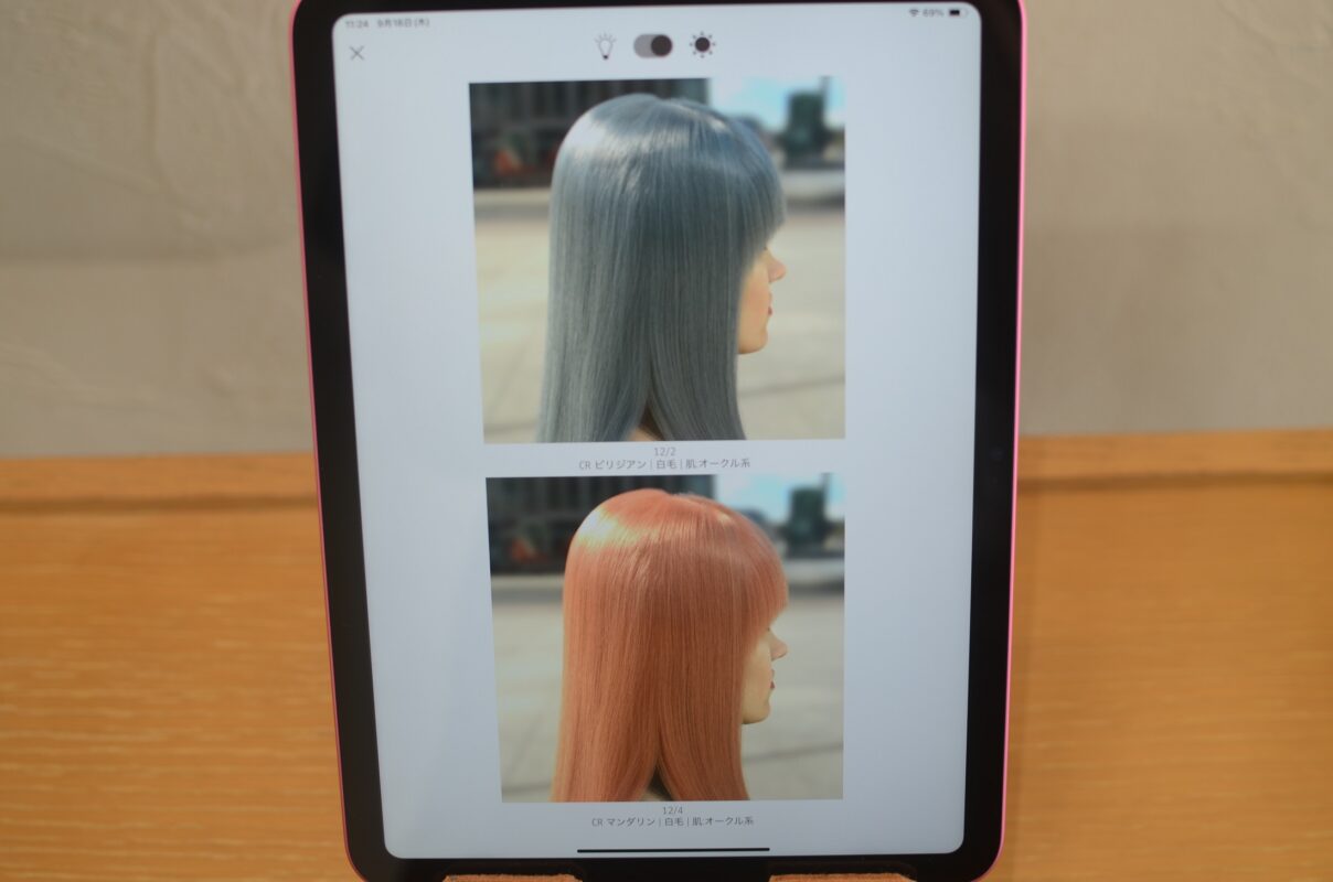 ヘアカラーの仕上がりをイメージアップ HAIR BEAUTY Styling Works. こちらのデジタルカラーチャートを使うことで、ヘアカラーの仕上がりのイメージがより分かり易くなります。また、色々な色彩にチャレンジしてみたくなる?後押しのきっかけになればと。色の調合次第で、細かい微調整が可能なので、同じヘアカラーをするなら、たくさん楽しんでいただきたく思います。 と 白髪でお悩みのお客様も、黒髪と同様に対応が可能です。近年、明るめの髪色が職場でも大丈夫なケースが増えておりますので、メークや服の色に合わせて選んでみるのも良いかと。ちょっとしたきっかけが、人生を変えることも。 と