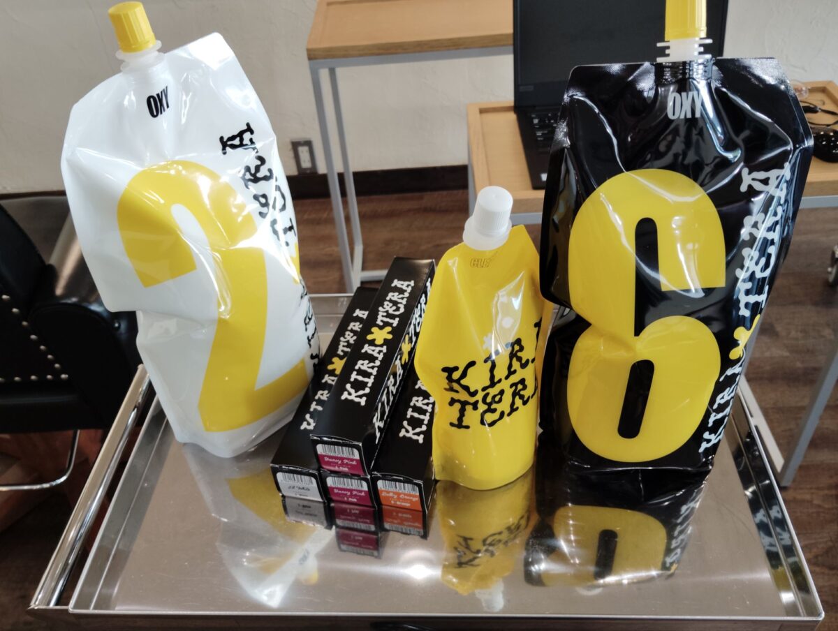 白髪ぼかしにお勧め・鮮やかな発色のキラテラカラー・ HAIR BEAUTY Styling Works. <キラテラカラー>新しくカラー剤を追加いたしました。ピンク色とオレンジ色の鮮やかな発色のスタイルを、オーダーされるお客様が増えています。一度、黒髪を明るくしてからのダブルカラーでの施術がお勧めです。白髪ぼかしにも効果的に! と